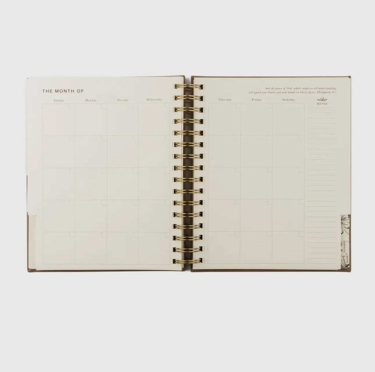 Welcome to your most intentional year yet! Our 12-Month Undated Planner combines Hosanna Revival’s beautiful Marlo design with intentional and functional features. Start wherever you are at and begin building out your plans and dreams with the flexibility of your own timeline. This planner includes our signature Month-at-a-Glance spread, a monthly calendar, weekly horizontal spreads, and extra note pages. With Scripture planted throughout the pages, each week has space to write out a “word for your week” in hopes that it would be a reminder of truth to guide your days.