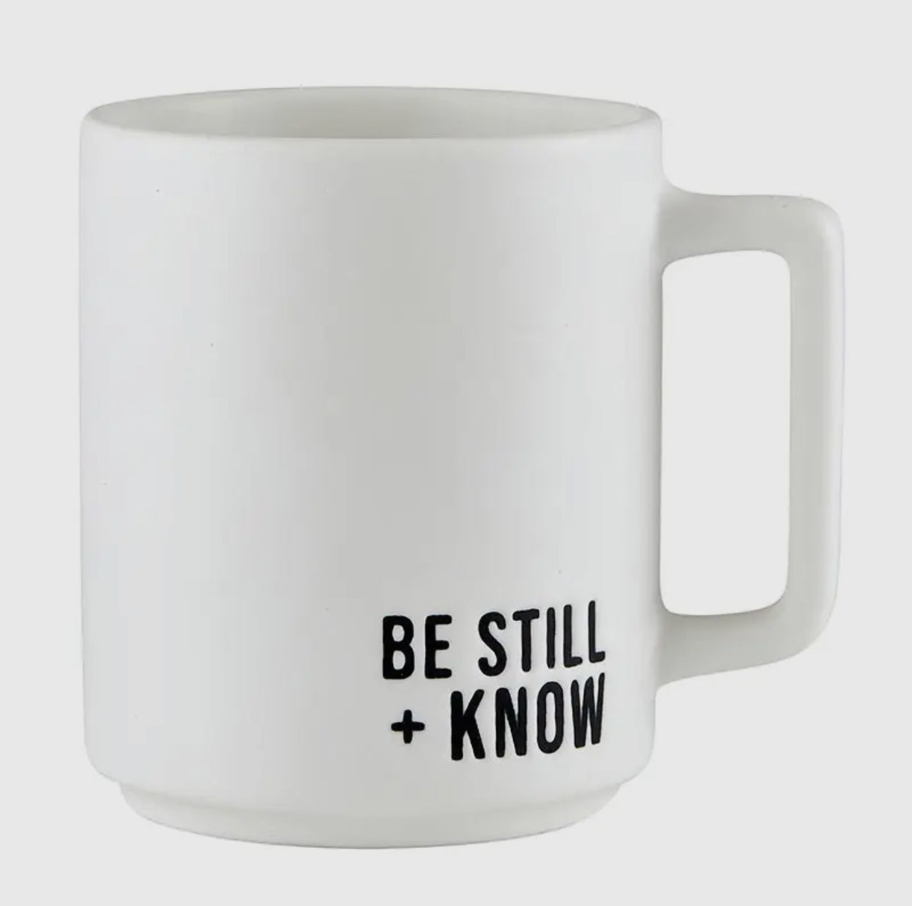 These sleek matte mugs have a large handle and are stackable for easy storage.