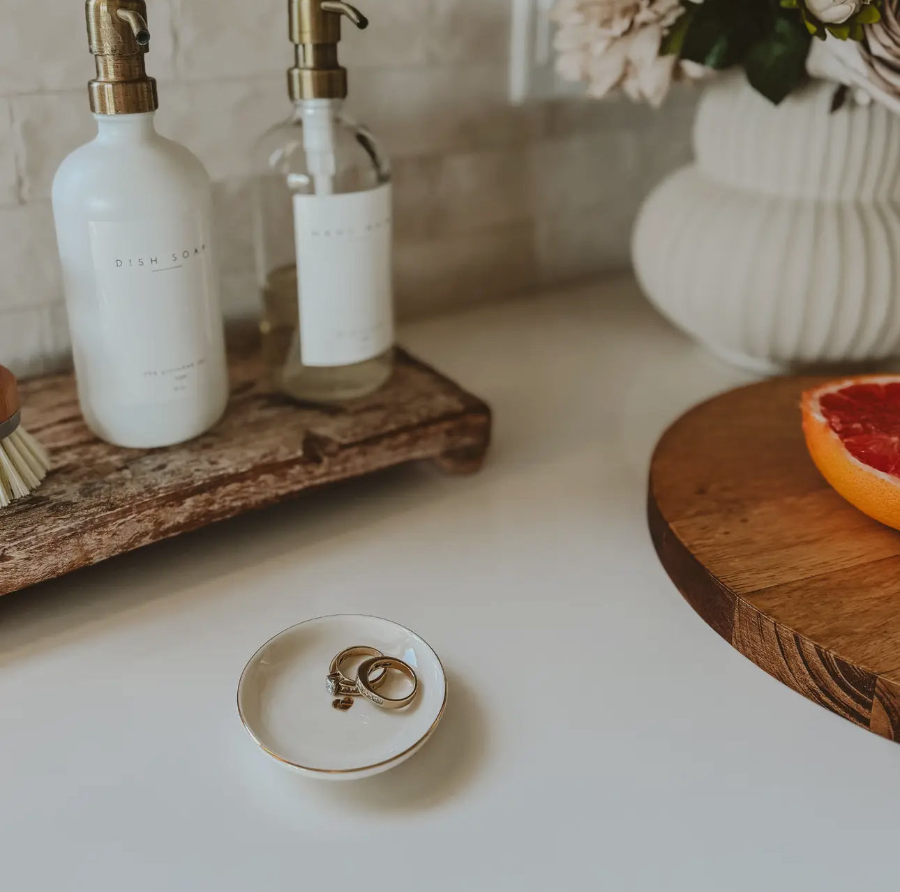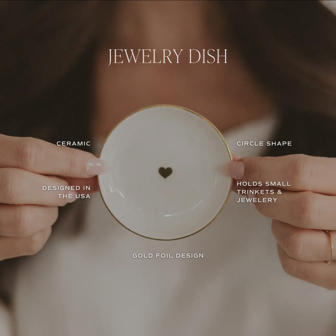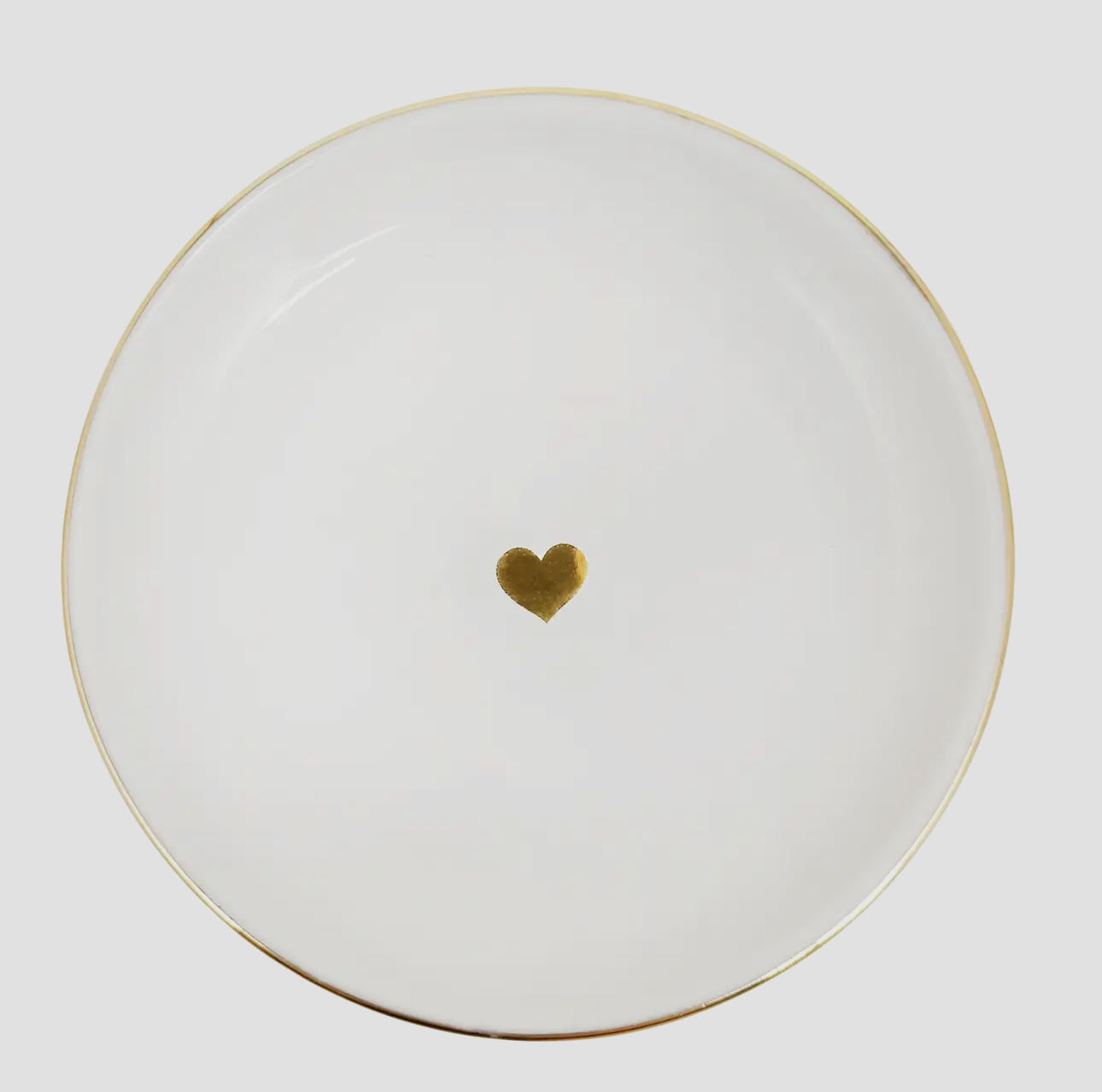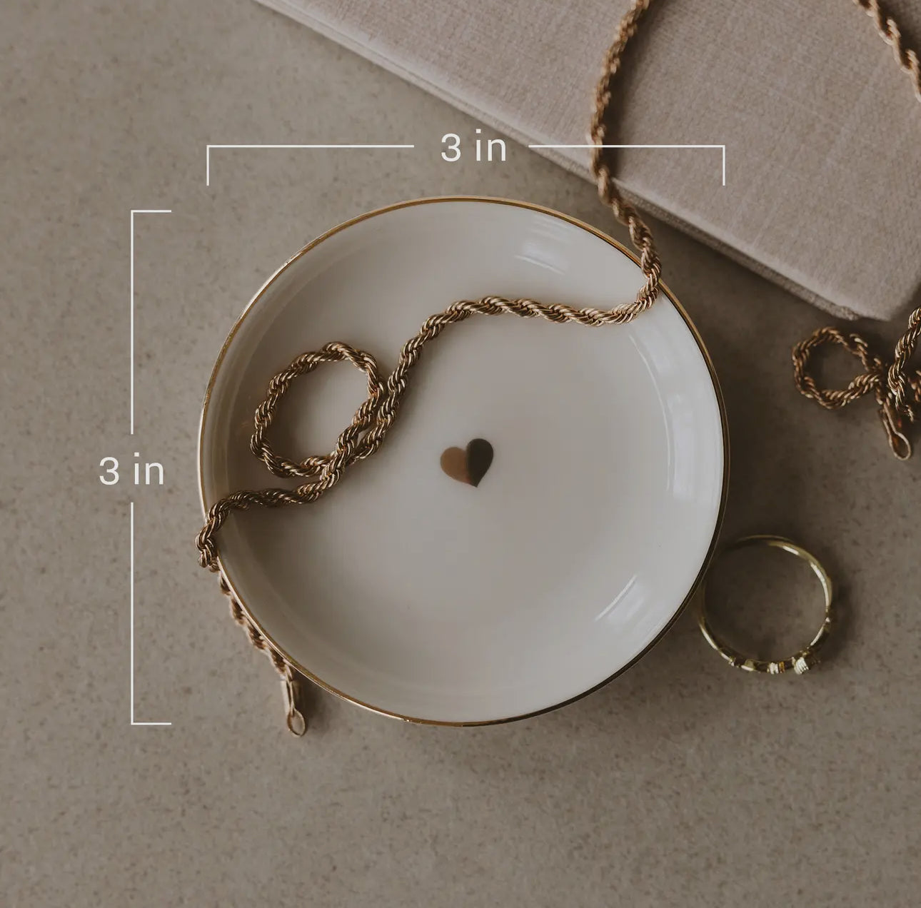Our small trinket tray makes a great gift for Valentine's Day, Mother's Day, Engagements, Bridal Showers, Weddings, and more. This catch all tray features a simple, chic gold heart design that makes it the perfect ring dish for any room.