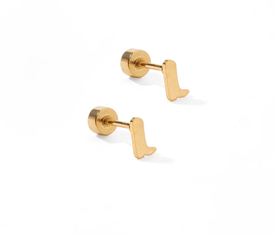 These 6mm gold boot studs feature intricate detailing, adding a western-inspired flair to your jewelry collection. The screwback stud design ensures a secure and comfortable fit, making them ideal for all-day wear. Perfect for cowgirl enthusiasts or anyone looking to add a fun, stylish touch to their accessory collection.
