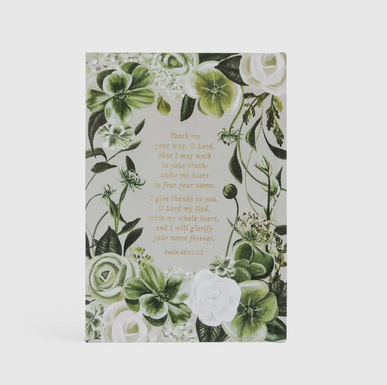 This notebook features our Dorset design, a nod to the Forde Abbey and Garden just outside of Dorset County in England. This spot is home to 30 acres of gardens, meadows, and nurseries that are overflowing with life. This design features the Lenten Rose—a rose known for its resilience through a variety of conditions—paired with beautiful white garden roses and hydrangeas. Regardless of what you have walked through, whether pain or joy, may the resilient nature of these flowers fill your heart with hope that your heavenly Father will uphold you in your weakest moments.