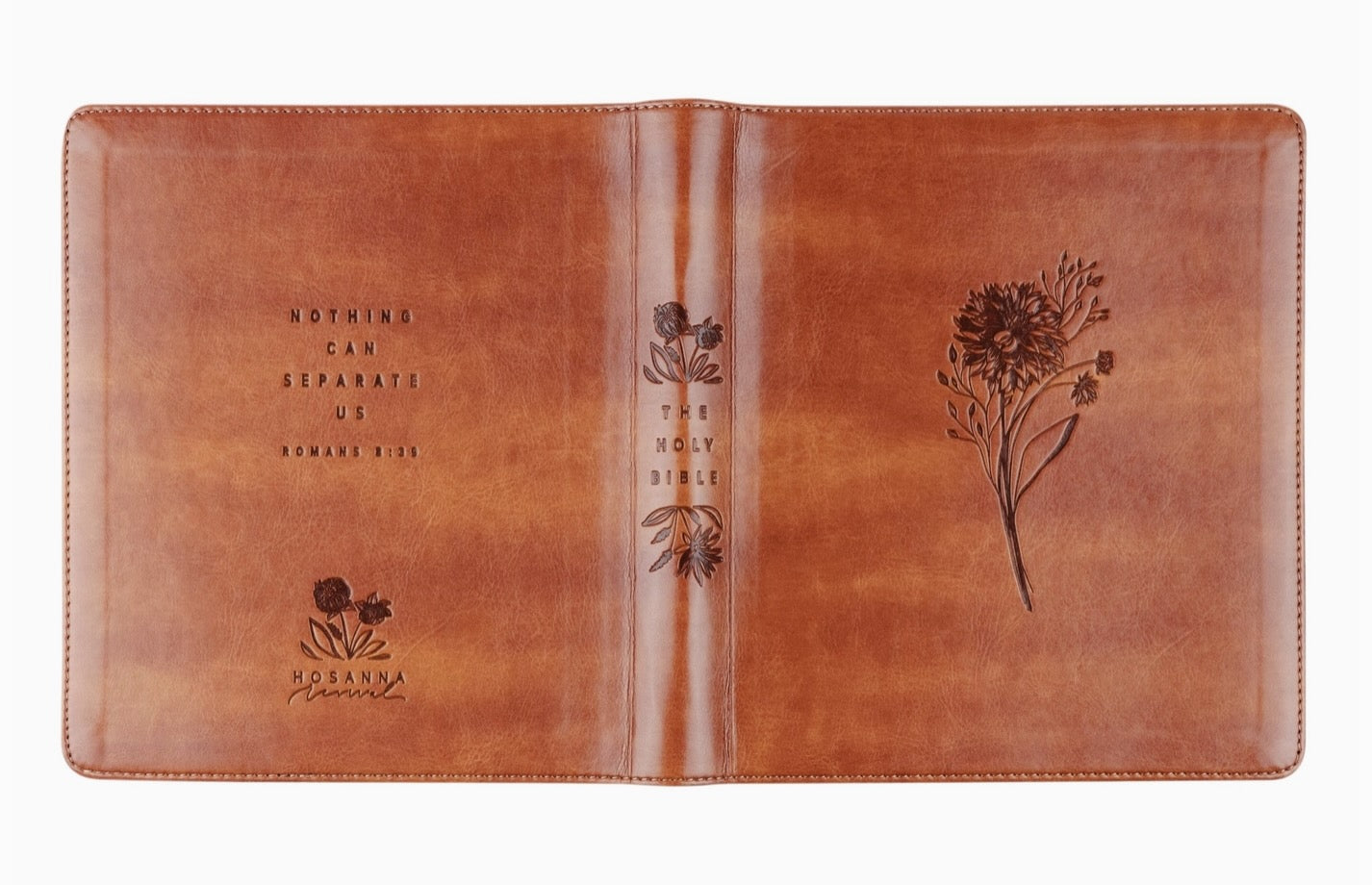 For the back of this Bible, I chose a passage from the end of Romans 8 that reads like a battle cry. God says that "Nothing will separate us from the love of God in Christ Jesus our Lord." Our hope and prayer for you is that God's love will strengthen you as you study Scripture using this precious tool, and that you'll be reminded of His steadfastness and the strength of His love, grace, and mercy as you read it each day.