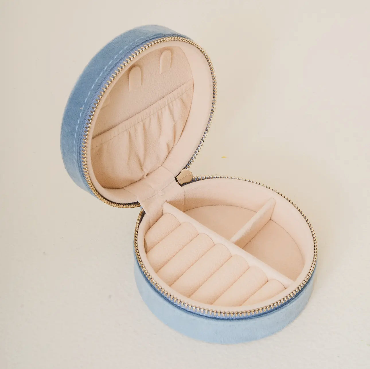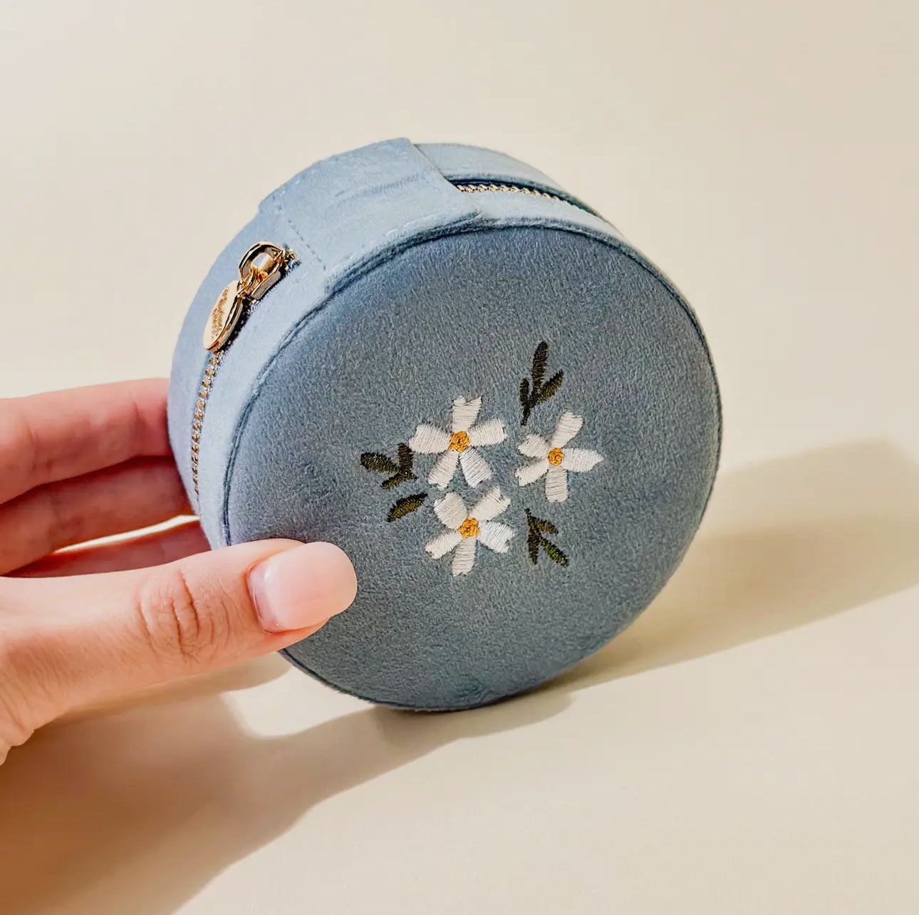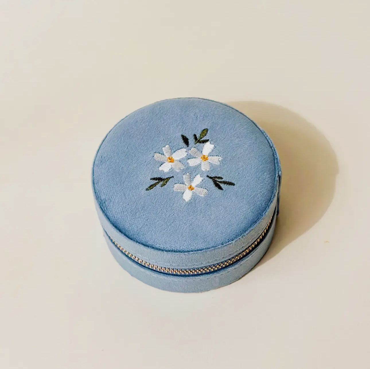 Your new adorable solution for keeping accessories safe and organized on the go! On the outside, this case features a stunning floral embroidered lid and gleaming gold zipper hardware. Inside, you'll find 5 slots for rings or earrings, an interior lid pouch, and open storage space for larger pieces.