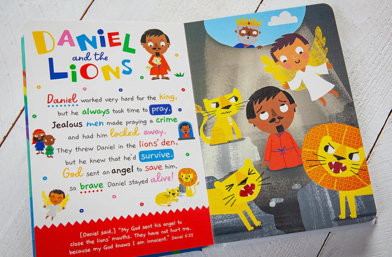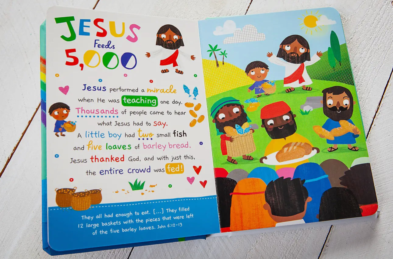 Set sail with Noah, follow Moses through the Red Sea, and marvel at Jesus’ miracles as you read this fun collection of Bible stories together.