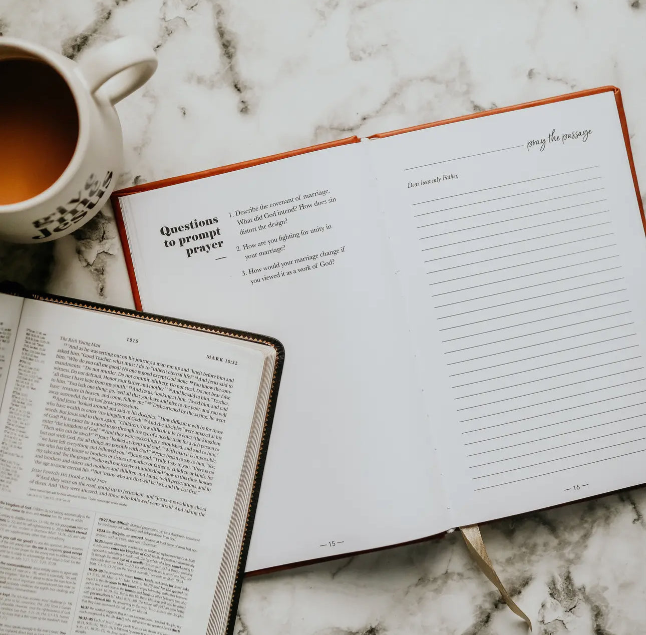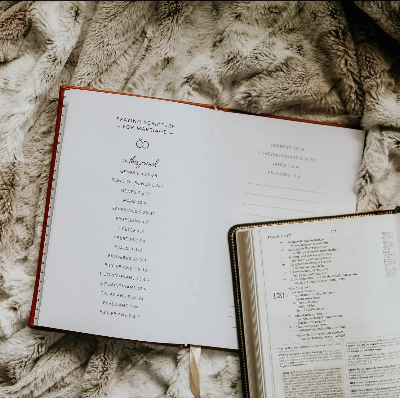 This journal guides readers to pray through passages of Scripture with a focus on marriage. The journal features passages to pray printed directly in the journal, guided instructions on praying the Bible, commentary on the passage, guided prayers, and questions to prompt prayer. The journal also includes lined pages at the end that can be used to pray any passage in the Bible.