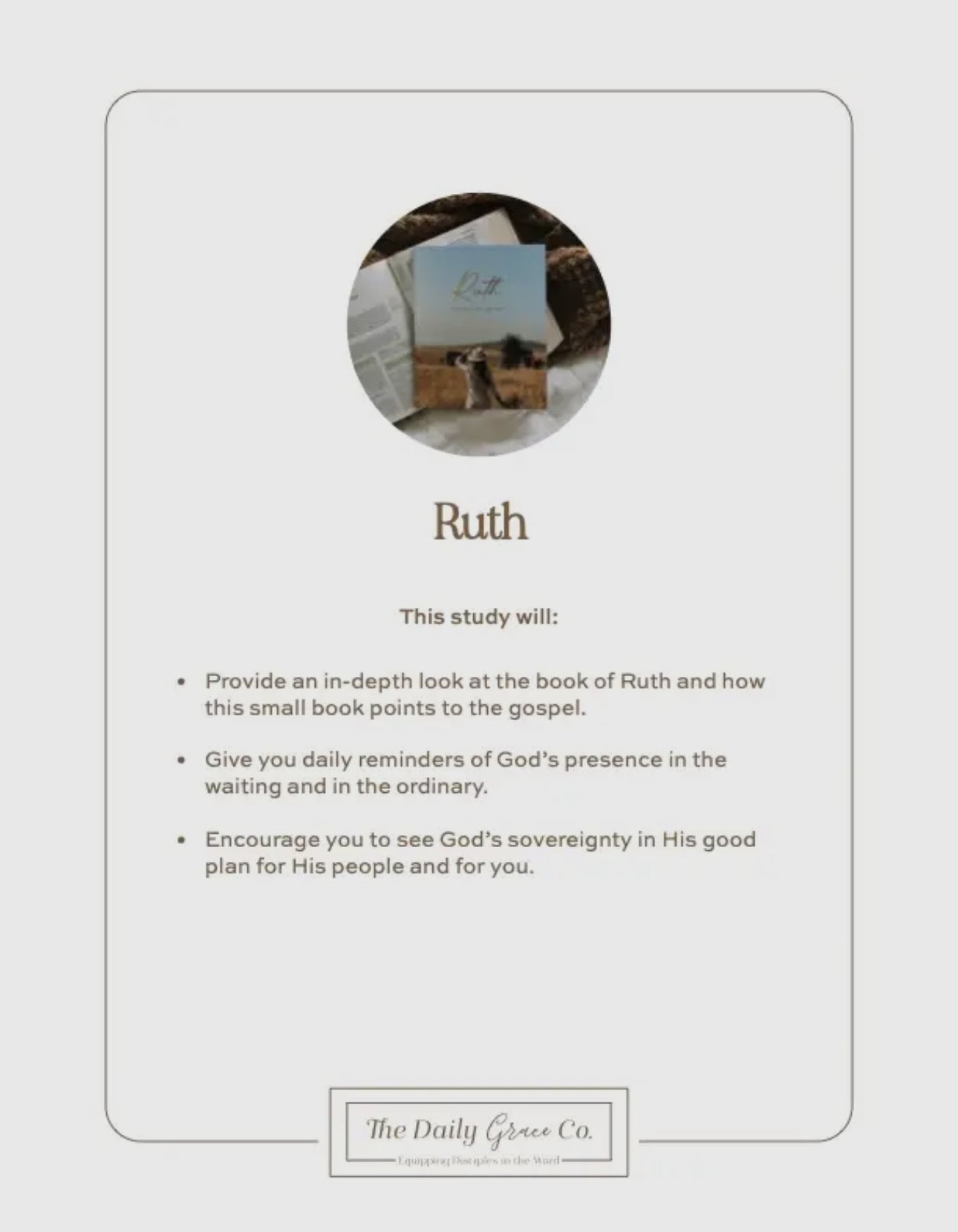 This 4-week study on the book of Ruth is an in-depth look at the book of Ruth and how this small book points to the gospel. The short book of Ruth is packed with grace and truth for every season of life. It is a reminder that God is present in the waiting and the ordinary. It is full of gospel-hope that God is working behind the scenes in ways we could never imagine to sovereignly and providentially bring about His good plan for His people. This is not your ordinary study of Ruth. This is not just about a love story between Ruth and Boaz but about the ultimate love story between God and His people.