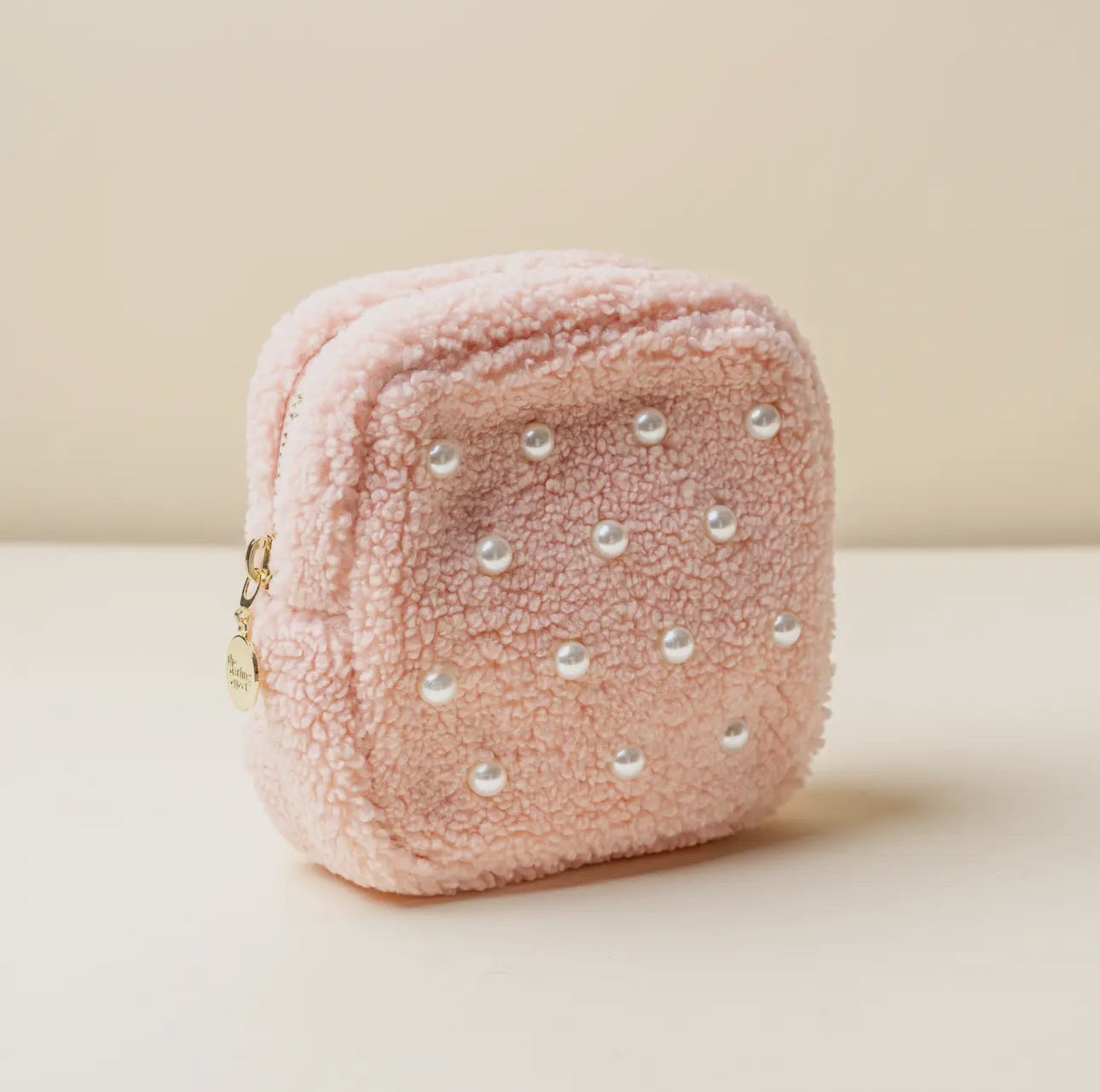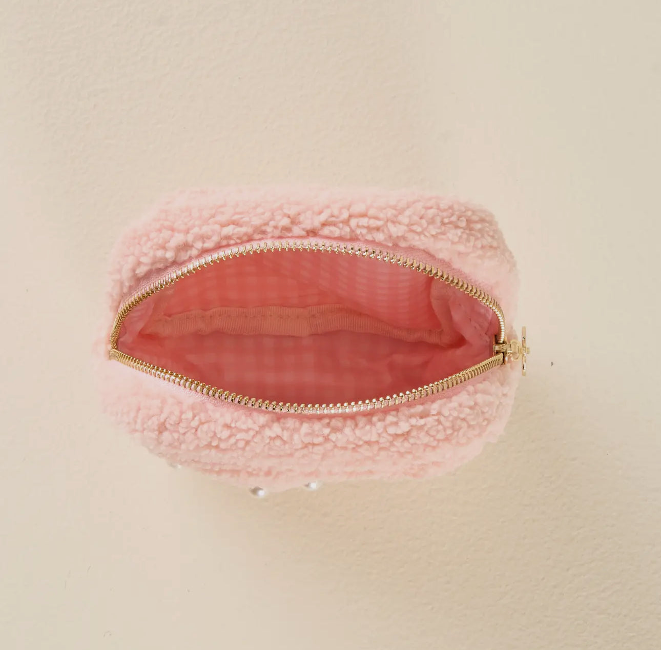 Keep your essentials safe, secure, and stylish in our lovely Teddy Pouches! Made from irresistibly soft sherpa material, these pouches feature adorable details that make them a joy to carry. With a darling, wipeable interior lining and chic gold hardware, they’re perfect for cosmetics, travel, purse organization, and so much more.