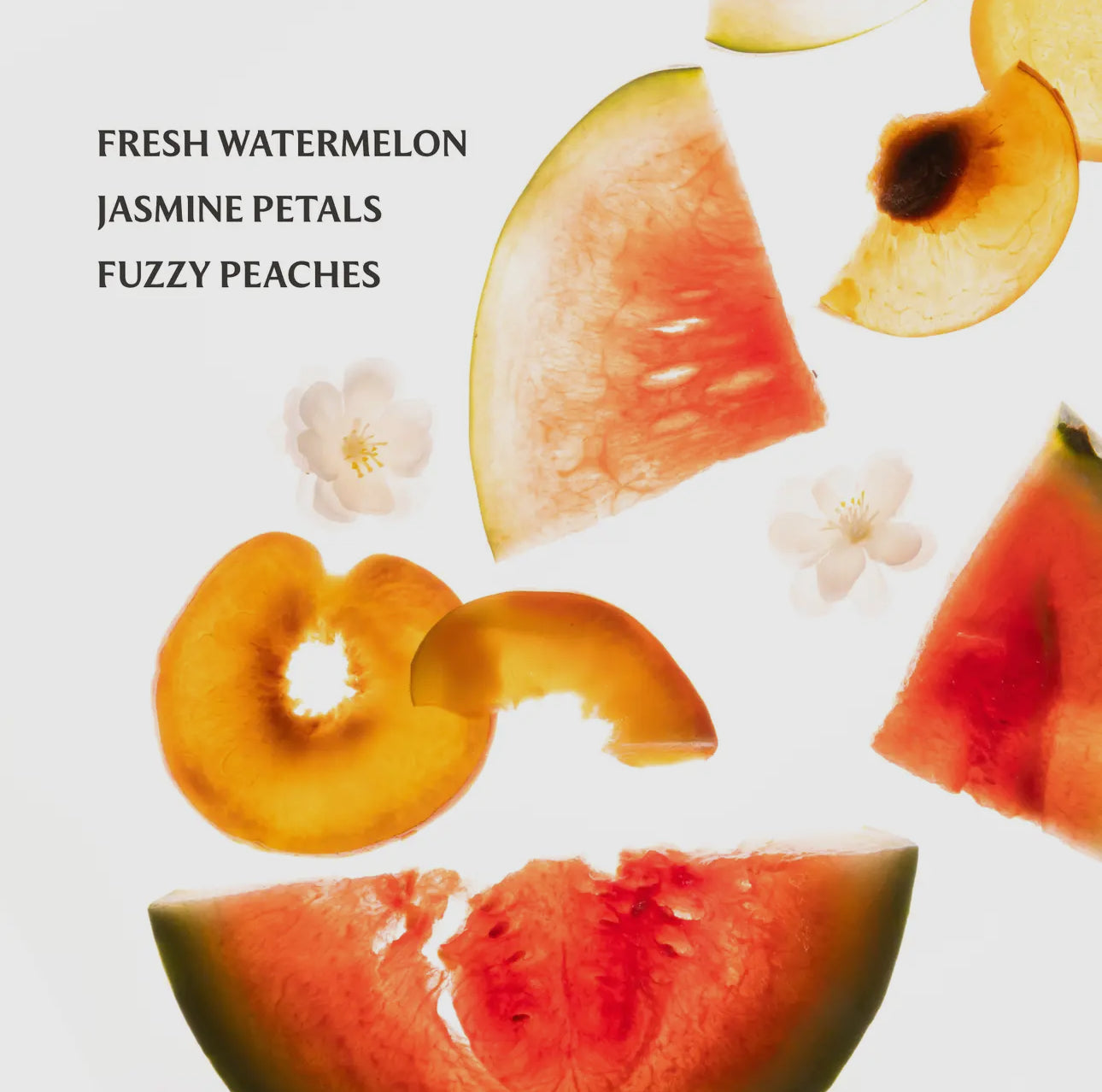 Wild Watermelon Scent: Juicy and playful. Wild watermelon mingles with jasmine petals and the soft sweetness of fuzzy peaches, evoking a carefree summer breeze and sunlit joy.