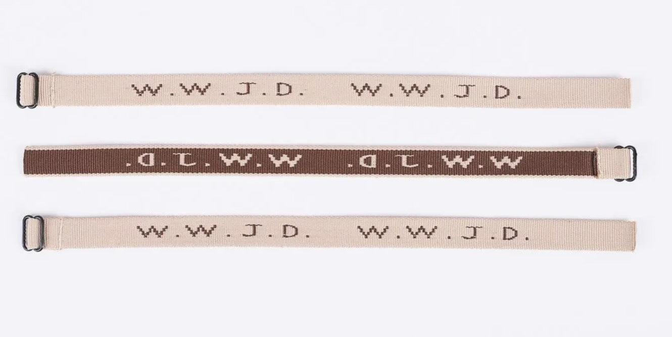 The light brown/tan colored design features "WWJD" woven in a dark shade of brown to create a visually appealing contrast, making these bracelets a fashionable way to share your faith and values.